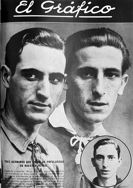 Вот фото братьев Эваристо в аргентинском крупнейшем спортивном издании El Grafico в декабре 1928 г. с подзаголовком: «Три брата, которые пользуются популярностью в нашем футболе».