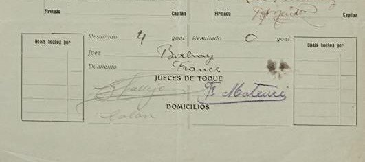 Здесь мы видим настоящий автограф капитана сборной Боливии Рафаэля Мендеса. У Бразилии никто не расписался, даже имя Прегиньо не вписали. Судил матч Жорж Бальве (Франция). Ниже автографы двух лайнсменов — мексиканца Гаспара Вальехо и Франсиско Матеуччи. Отчётливо видно, что сдвоенной буквы «с» нет в его подписи. И уж заодно — голосовой переводчик Google и по-испански, и по-итальянски произносят фамилию Mateucci с ударением на «e». И в любом случае, хоть с одной «с», хоть с двумя — читается как «ч».