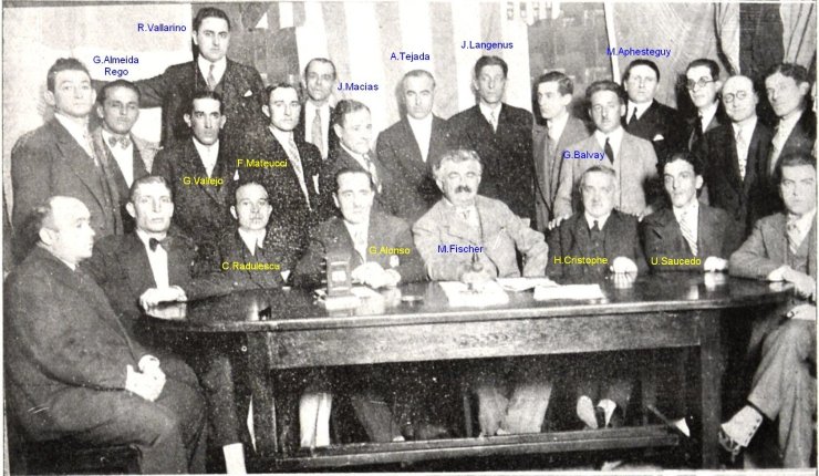 Но оставались ещё 2 уругвайца и чилийский рефери Альберто Варнкен (Alberto Warnken). Но я знал из чилийской газеты, что 10 (и даже 11) июля 1930 г. А.Варнкен никак не мог быть в Монтевидео, он прибыл только 12 числа. Посему арбитров на совещании с Фишером было лишь 14, 12 из которых на этом фото уже идентифицированы.