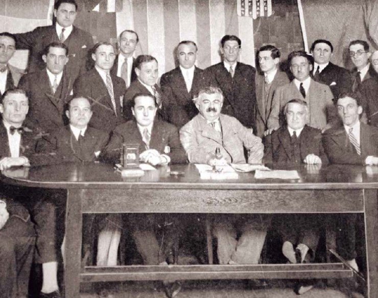 Европейских арбитров можно узнать сразу: бельгиец Джон Лангенус самый высокий, во втором ряду по центру. Его соотечественник Анри Кристоф сидит справа от Мориса Фишера. Француз Жорж Бальве стоит позади А.Кристофа, положив ему руку на плечо.