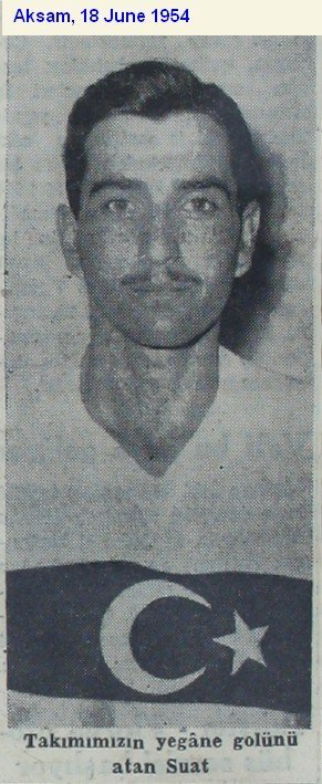 Это момент исторический для сборной Турции — первый гол на мундиалях. Первый гол в матче сложился из индивидуального мастерства и настырности 23-летнего нападающего Суата Мамата. С правого фланга, не дойдя до угла вратарской площадки метра 4, Суат №8 вогнал мяч в сетку, не смотря на близость двух защитников, застав вратаря врасплох.