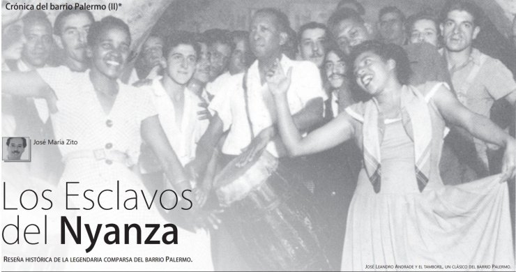 Заголовок говорит о том, что статья посвящена музыкально-танцевальной группе Рабы Ньянзы. И Андраде играл в этой группе не просто на барабане (el tamboril, как написано справа внизу мелким шрифтом на фото) — он играл на бас-барабане, самом большом, по-испански el bombo.