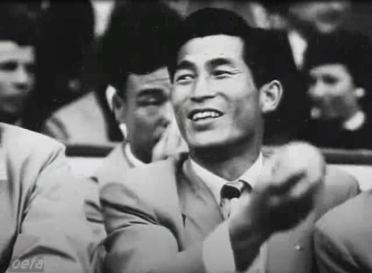 Всё бы ничего — да только позади широко улыбающегося Ли Сан Ыи сидит никто иной как защитник Ли Чон Кап. Да, это именно он неспешным шагом идёт с номером 14 на спине к своим воротам на предыдущем фото.