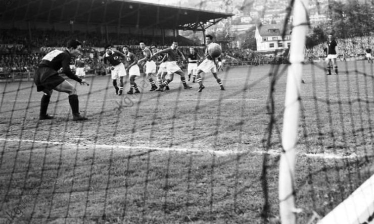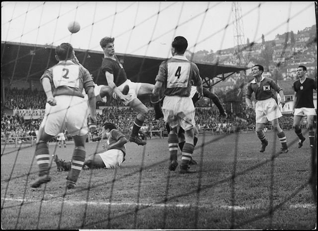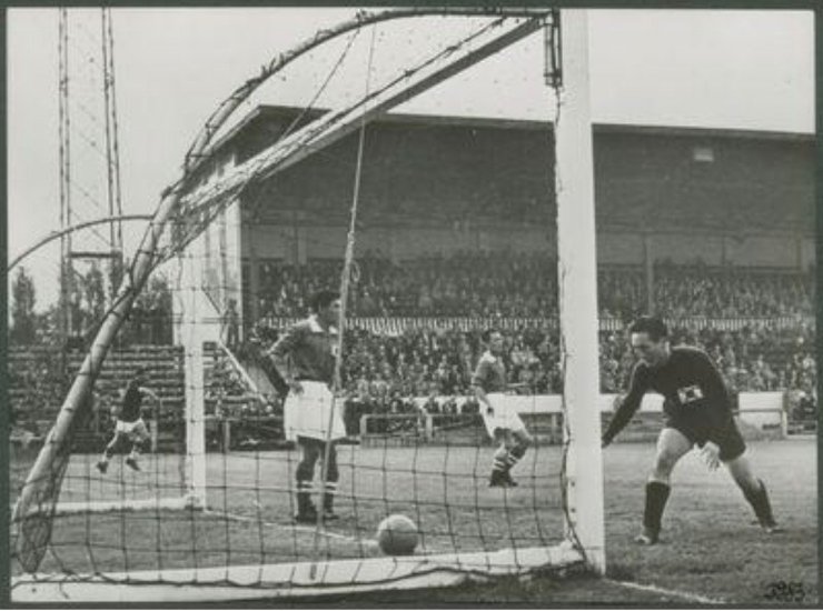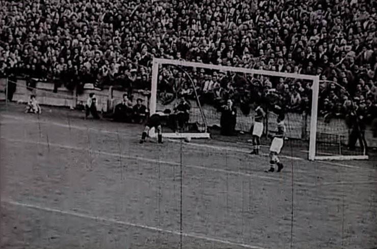 Первый гол Пушкаша на мундиалях, первый гол в матче. Вот так это выглядело из-за ворот: