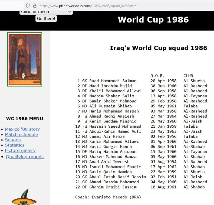 На ЧМ-86 в Мексике в составе дебютантов мировых чемпионатов, сборной Ирака,… могли быть игроки, родившиеся в подходящий для нас день.