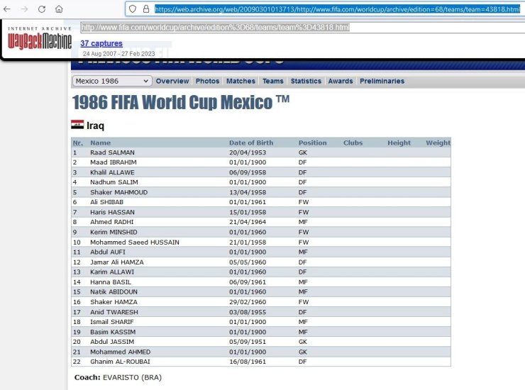 Старый сайт ФИФА говорил, что №16 сборной Ирака Шакер Махмуд Хамза, сыгравший на ЧМ-86 20 минут в матче против Мексики, родился 29 февраля 1960 года.