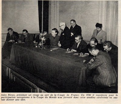 В блоге Soccer Nostalgia, который ведёт Шахан Петроссян (Shahan Petrossian), это фото дано необрезанное, с подписью на французском языке. А в той подписи в первой же фразе написано, что Жюль Риме проводит жеребьёвку Кубка Франции.