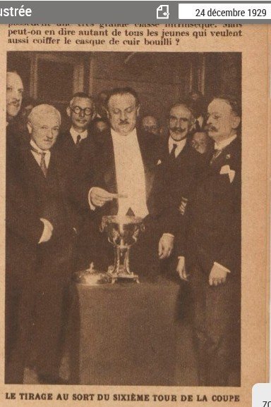 Сирийскому автору я также сообщил, что фото в его книге не из той эпохи и совсем не имеет отношения к первому Кубку мира. К тому же я нашёл фото жеребьёвки Кубка Франции за декабрь 1929 с участием Жюля Риме — так там та же чаша для голосования, та же крышка от сосуда. Сириец согласился с моими доводами.