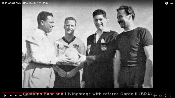 На стоп-кадре из матча США — Испания вы можете увидеть троих футболистов, кто или в действительности был капитаном на ЧМ-50, либо считался основным капитаном. Фото это вам уже знакомо: