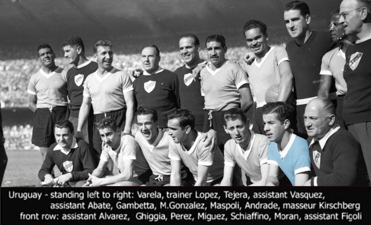 На самом турнире в Бразилии была интересная история. Одна супружеская пара из Уругвая, в которой жена была итальянкой, а муж был уругвайцем, дантистом, — они путешествовали по Бразилии и посетили несколько матчей ЧМ. Дантисты — люди обеспеченные, у супругов был фотоаппарат. Остались прекрасные снимки вместе с футболистами сборной Уругвая.