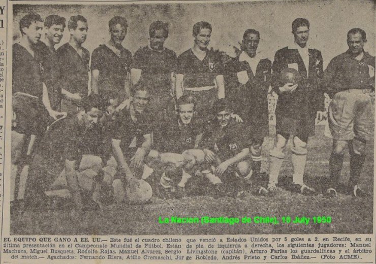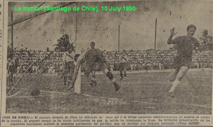 В одной из предыдущих статей об этом матче было два фото момента этого гола. И я говорил, что в чилийской прессе в газете называли в подписи под фото это вторым голом Чили в матче; а в журнале — несмотря на ряд пальм на фоне — утверждали, что это третий гол Чили, т.е. забит во втором тайме.