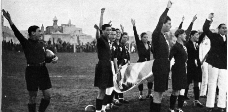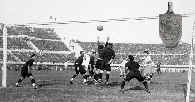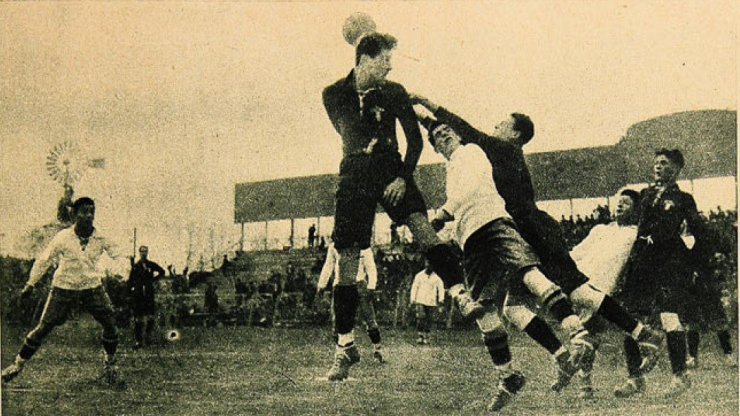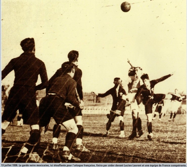 Есть ещё одно чёткое фото первого матча в истории мундиалей, т.е. Франция — Мексика: