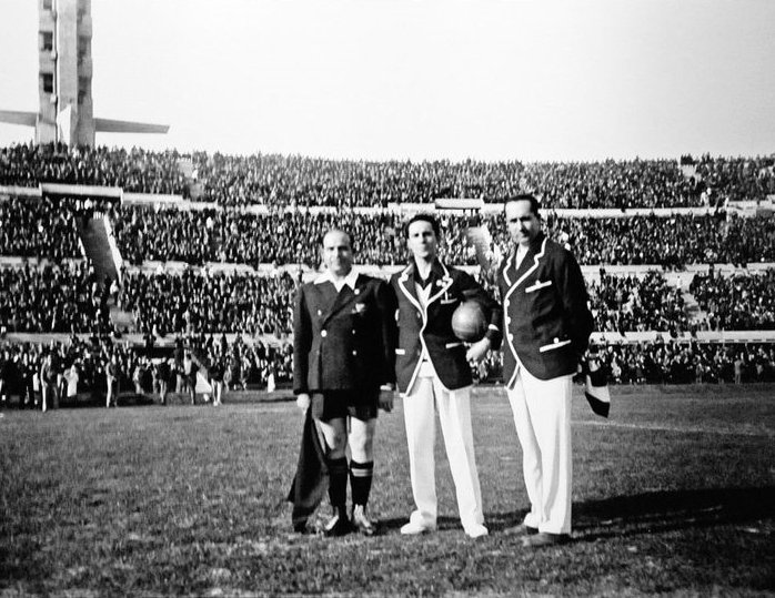 Зафиксировал всё это бельгийский рефери Анри Кристоф. В лайнсменах бегал Джон Лангенус и уругваец Мартин Афестеги (тоже в отороченном фирменном пиджаке). Лица всех арбитров ЧМ-30, в том числе и уругвайских, были даны в старой моей статье.