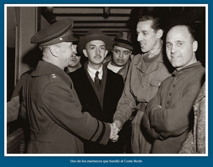 В сети есть также фото момента, когда благодарят за службу итальянского офицера из экипажа, который затопил Конте Верде в Шанхае в 1942 году: