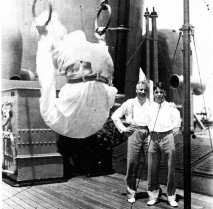 Ещё раньше фото Мушаля было дано на борту Конте Верде. Но лица его тогда мы не видели. Это вот так выглядело: