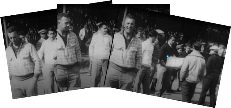 На этом фото Жак Мушаль уже стоит над Адамсом, в центре кадра. Адамс всё так же опирается руками на партнёров. А кроме тренера Эктора Гутинка на фото также Эмиль Хансе, член делегации, олимпийский чемпион 1920 года.