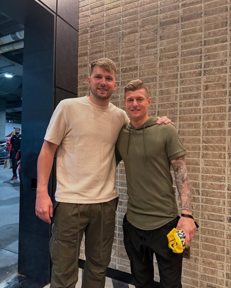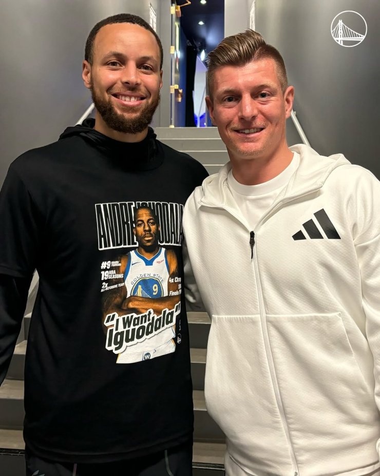 Тони Кроос встретился с топовыми игроками в баскетбол Стефом Карри и Лукой Дончичем.