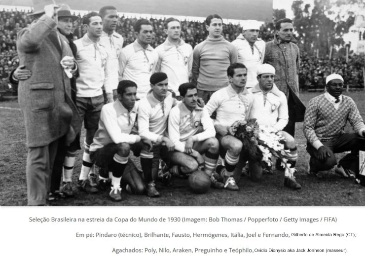Видим также, что с командой фотографировались и чиновники, члены так называемой технической комиссии, определяющий состав сборной. В комиссию входил и уже знакомый нам Жилберто де Алмейда Регу, арбитр на турнире, он стоит справа в пальто. А слева придерживает слетавшую от ветра шляпу Афранио да Коста, глава делегации Бразилии на турнире.