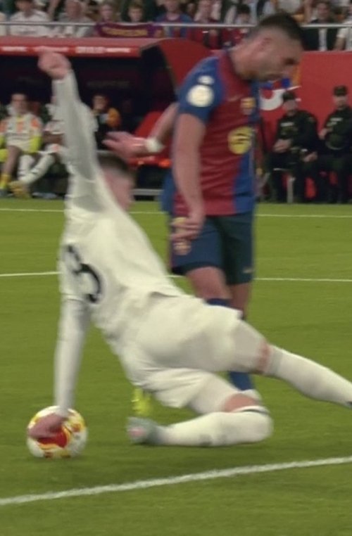 А это то, что не понравилось футболистам Реала, особенно Рюдигеру и Винисиусу. Бьют игрока Барселоны, а недовольны игроки мадридского клуба. Парадокс.