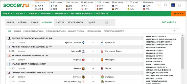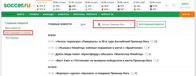 Дополнительная опция – просмотреть любой набор новостей строго по нужному вам турниру, например, по АПЛ. Просто и удобно: