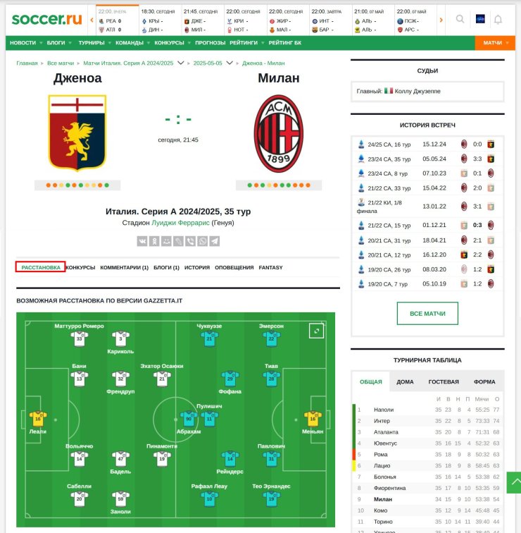 Отдельный разговор – меню матчей. Обратите внимание на раздел «Расстановка». Можно посмотреть прогноз на стартовые составы в матче или реальный состав ближе к стартовому свистку.