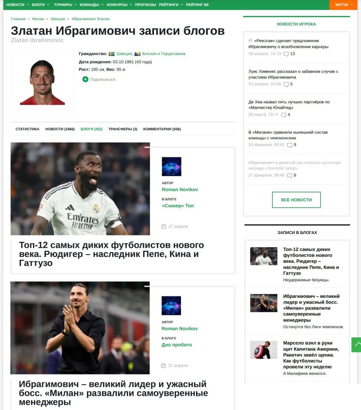 В новостях чаще всего есть ссылки на профили футболистов или клубов. Следите за обновлениями – новостями, статистикой, комментариями пользователей. Во вкладке «Блоги» найдете заметки, связанные с персоной или командой.
