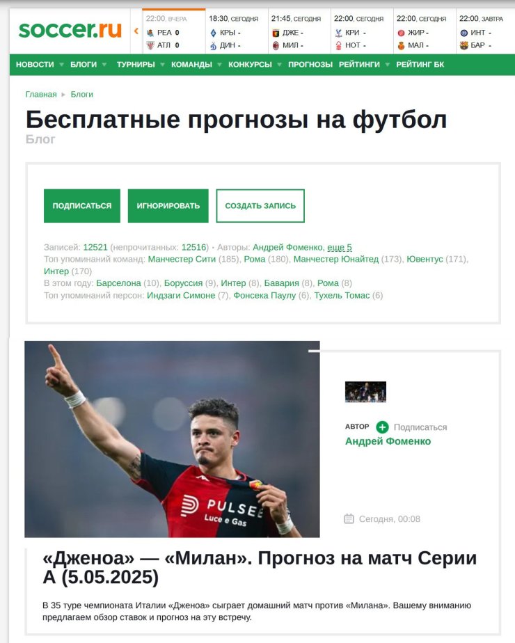 Для творческих людей тоже прекрасный шанс развить умения. Регистрируйте личный блог и ведите его на интересную вам тему. А система блогов от сайта позволяет следить за интересными вам темами – персоналиями, топами или тренерами. Создавайте собственные записи, делитесь мыслями о футболе.