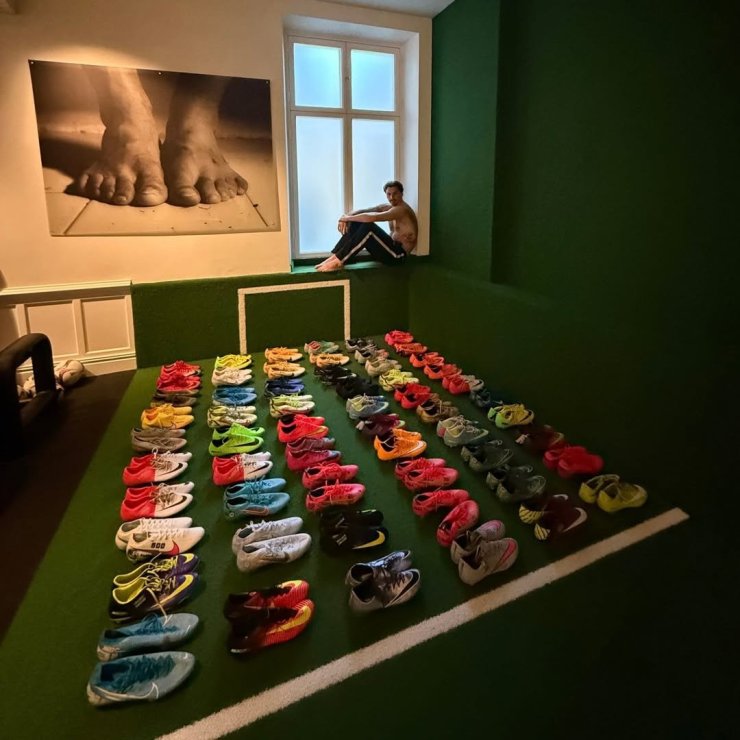 Златан Ибрагимович показал свою коллекцию бутс, а потом побоксировал для съемки.