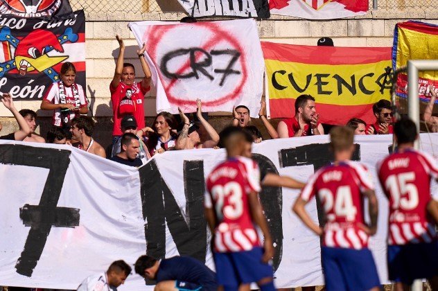 Также болельщики «Атлетико» вывесили баннеры против Роналду во время товарищеского матча с «Нумансией».
