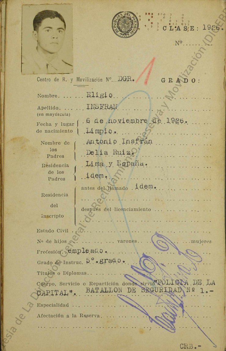 Кроме тех трёх фото и нескольких на общих — в целом и нет других фото Элихио Инсфрана. Так что из карты военучёта будет его самое чёткое фото, в 17 лет: