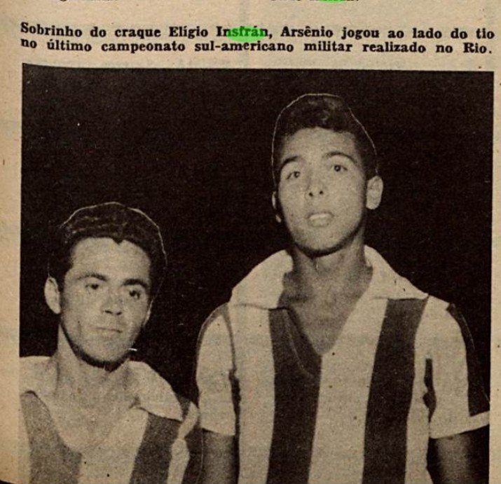 Это, как видите, Элихио Инсфран и его племянник Арсенио Инсфран, которому не было и 19 лет. Именно эти «братья» Инсфран играли вместе за сборную Вооружённых сил на чемпионате Южной Америки в конце 1959, проходившего в Бразилии. Арсенио был в звании капрала.