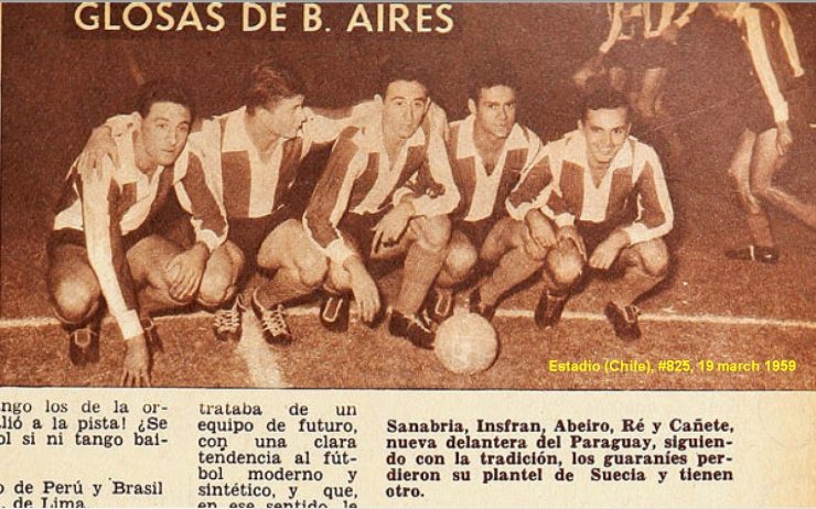 Вот фото из чилийского журнала Estadio от того же числа 19 марта 1959, пятёрка нападения парагвайцев на полях Аргентины: