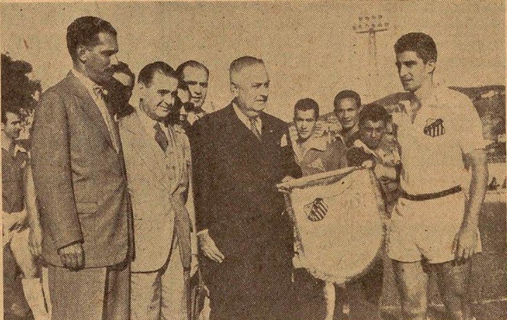 Вот в бразильской газете от 19 мая 1958 было фото шефа парагвайской делегации, который держит вымпел с Рамиро, капитаном ФК Сантос: