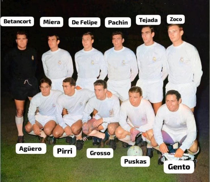А следующее его фото в составе Реала. Можно точно сказать, когда было сделано это фото — 12 декабря 1965 на Сантьяго Бернабеу перед матчем с Лас-Пальмасом в 13-м туре чемпионата Испании. В том матче Агуэро забил свой единственный гол за Реал в чемпионате.