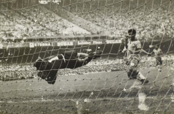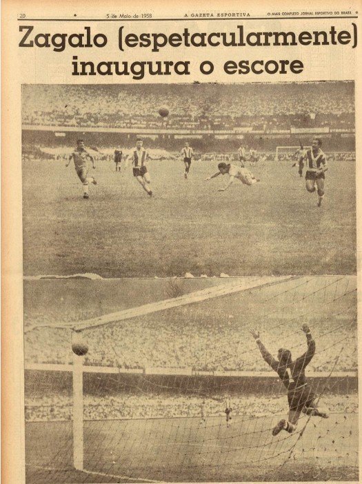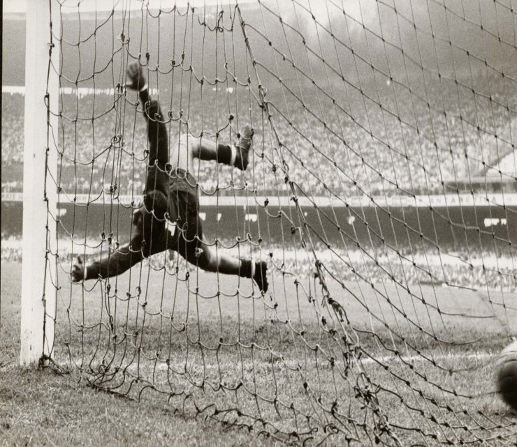 На 12-й минуте матча Загалло открыл счёт, забив эффектный гол головой, — и это зафиксировано аж на трёх фото. Ну, как такое не показать: