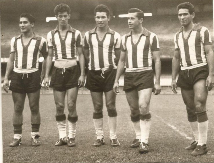 Это уже со зрителями, и у Амарильи (справа) запястье перевязано. Это левый фланг атаки, Оскар Агилера и Флоренсио Амарилья. На мундиале вместо Агилеры играл Кайетано Ре.