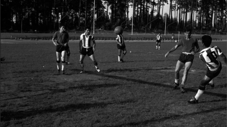 По мячу ударил №10 — это Кайетано Ре. Рядом с ним, скорее всего, опять Сеговия. А крайний слева в тёмной футболке — это, вероятно, Луис Сантос Сильва.