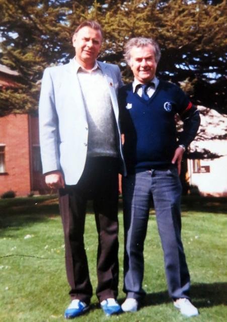 С газетой Правда стоит Нодар Ахалкаци, приехал в Москву встретиться с другом. А слева вы видите Тони Бартона, тренера Астон Виллы. Так описывает сын Дейв это фото — отец стоит между двумя тренерами, один обладатель Кубка чемпионов 1982, второй обладатель Кубка кубков 1981.