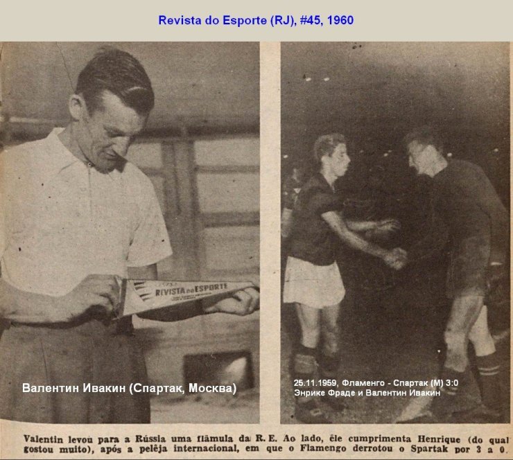 Начиная с №43 от 2 января и до №53 от 12 марта 1960 года в этом бразильском журнале публиковались статьи о футболистах Спартака, интервью с ними. В советской прессе редко давали такие подробности биографии наших же игроков.