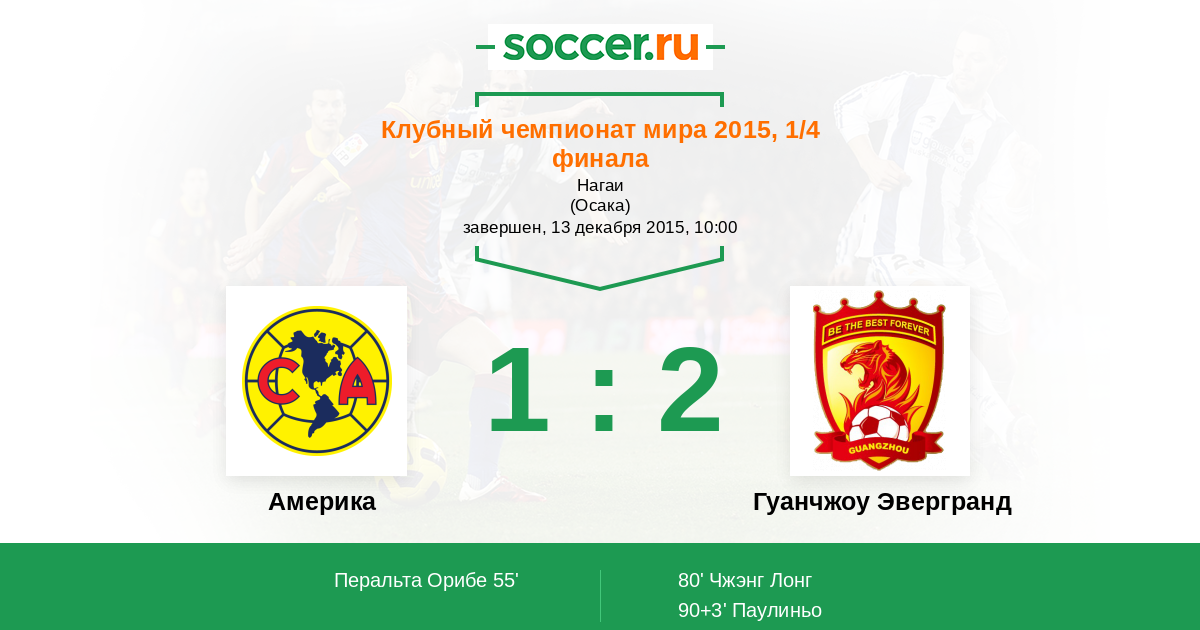 Америка - Гуанчжоу Эвергранд: обзор матча 13 декабря 2015