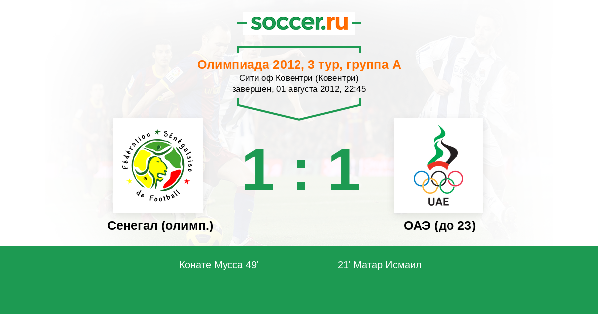 Сенегал (олимп.) - ОАЭ (до 23): обзор матча 1 августа 2012