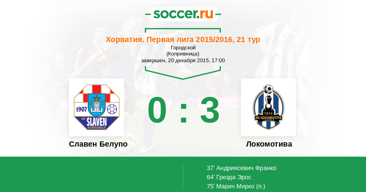Славен Белупо - Локомотива: обзор матча 20 декабря 2015