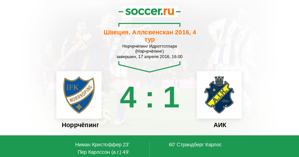 Норрчёпинг - АИК: обзор матча 17 апреля 2016