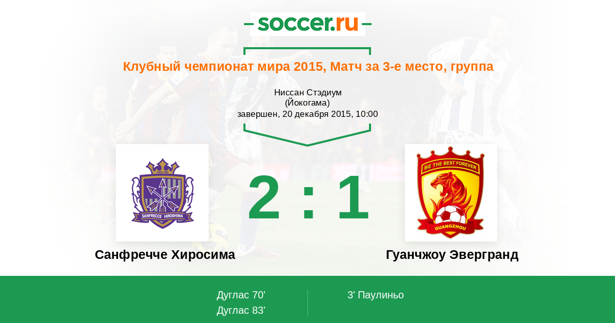 Санфречче Хиросима - Гуанчжоу Эвергранд: обзор матча 20 декабря 2015