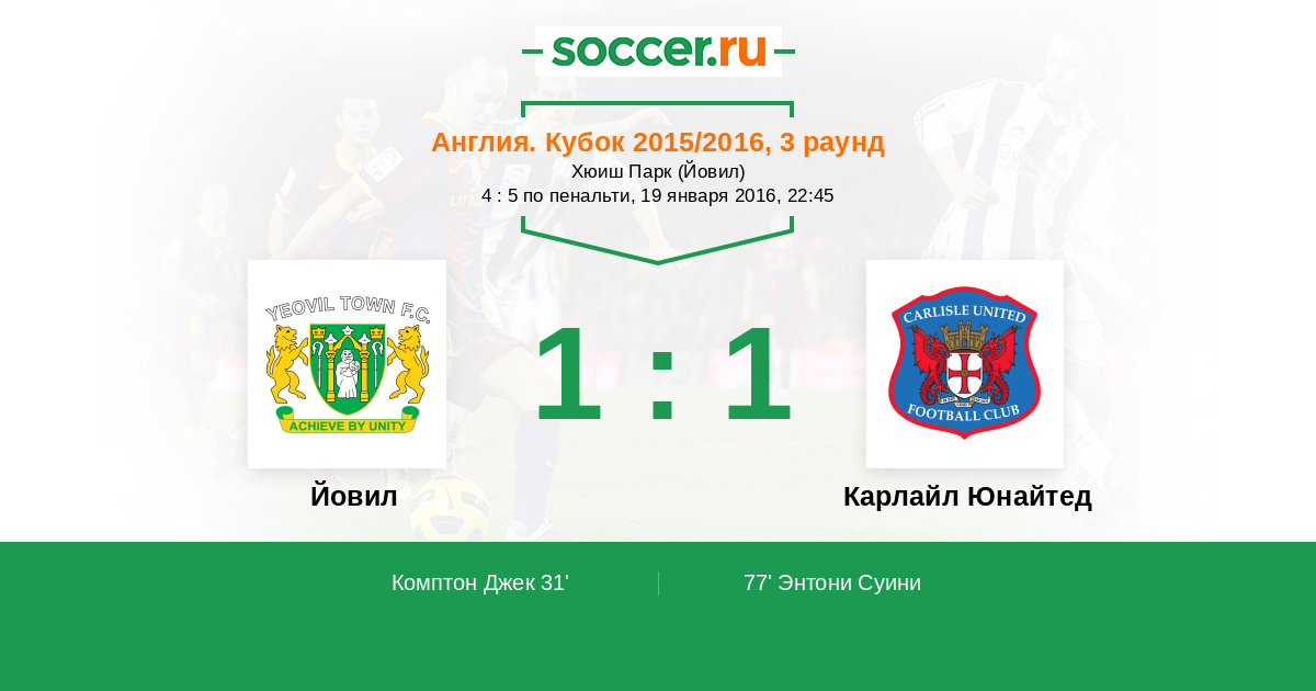 Йовил - Карлайл Юнайтед: обзор матча 19 января 2016