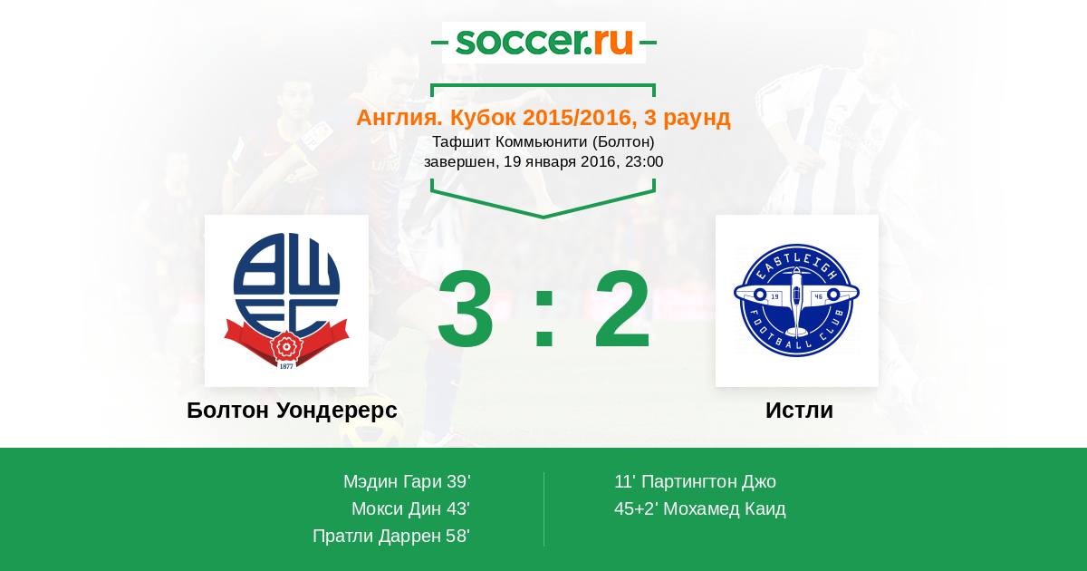 Болтон Уондерерс - Истли: обзор матча 19 января 2016