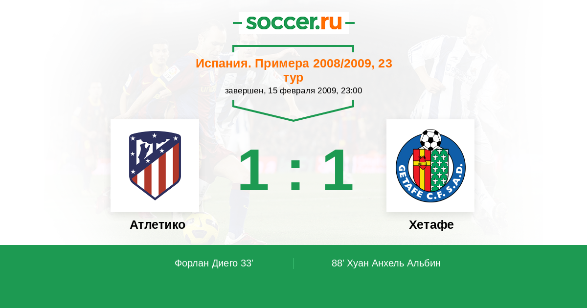 Атлетико - Хетафе: обзор матча 15 февраля 2009