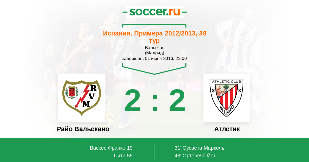 Райо Вальекано - Атлетик: обзор матча 1 июня 2013