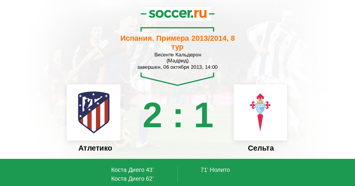 Атлетико - Сельта: обзор матча 6 октября 2013