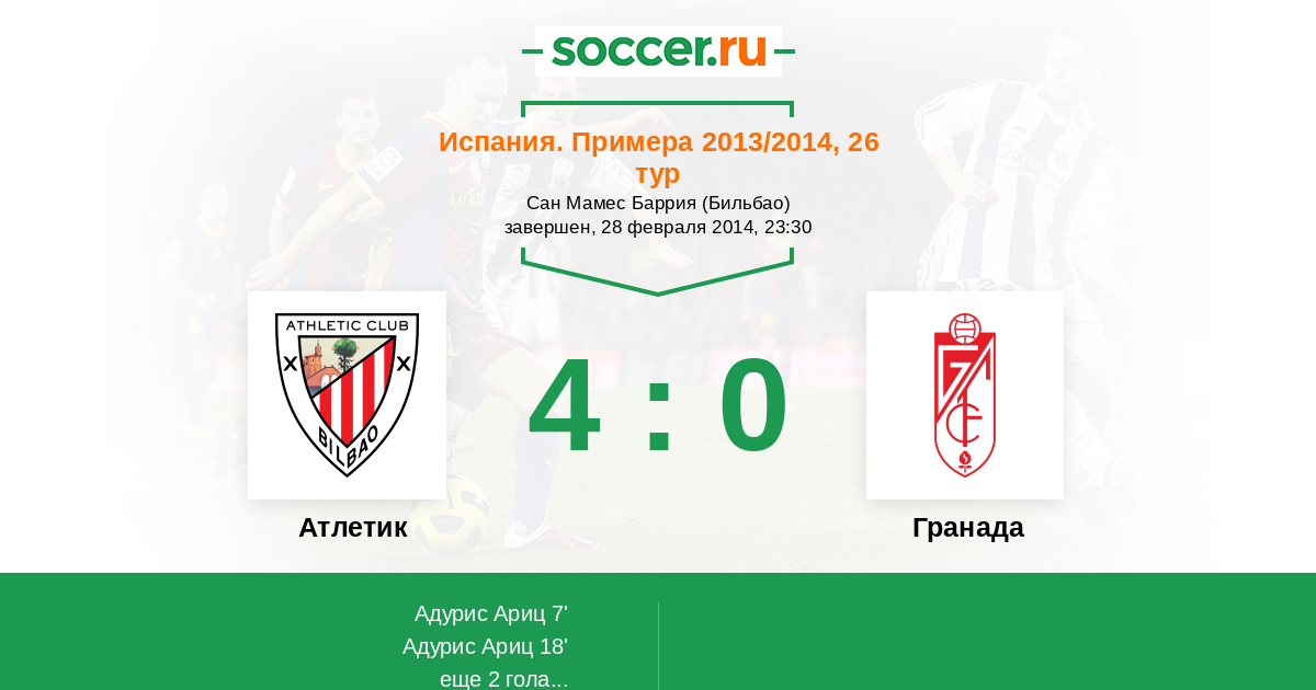 Атлетик - Гранада: обзор матча 28 февраля 2014